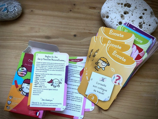 Inspiré de la mécanique classique du jeu de 7 familles, Citizen Family introduit une dimension collaborative passionnante. Ici, vous ne jouez pas l'un contre l'autre, mais main dans la main. La règle est claire : vous devez collectivement reconstituer et disposer toutes les familles au centre de la table pour remporter la partie. Chaque carte jouée, chaque demande formulée et chaque décision prise doit servir l'objectif commun.