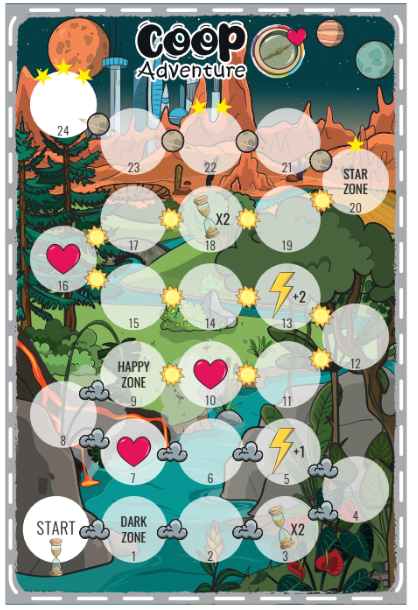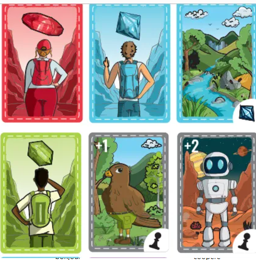 Vous incarnez des aventuriers au grand cœur à la recherche des 7 cristaux au pouvoir bienveillant : la source de la bonne humeur et des bonnes relations aux autres ! A l’aide des 7 catégories de cristaux qui permettent d’activer des capacités bienveillantes, prenez votre boussole et de vos jumèles, repérez et connectez les paires de couleurs au fil des époques. Le passé au temps des dinosaures, le présent dans les plaines et jusqu’au futur sur des planètes inconnues.